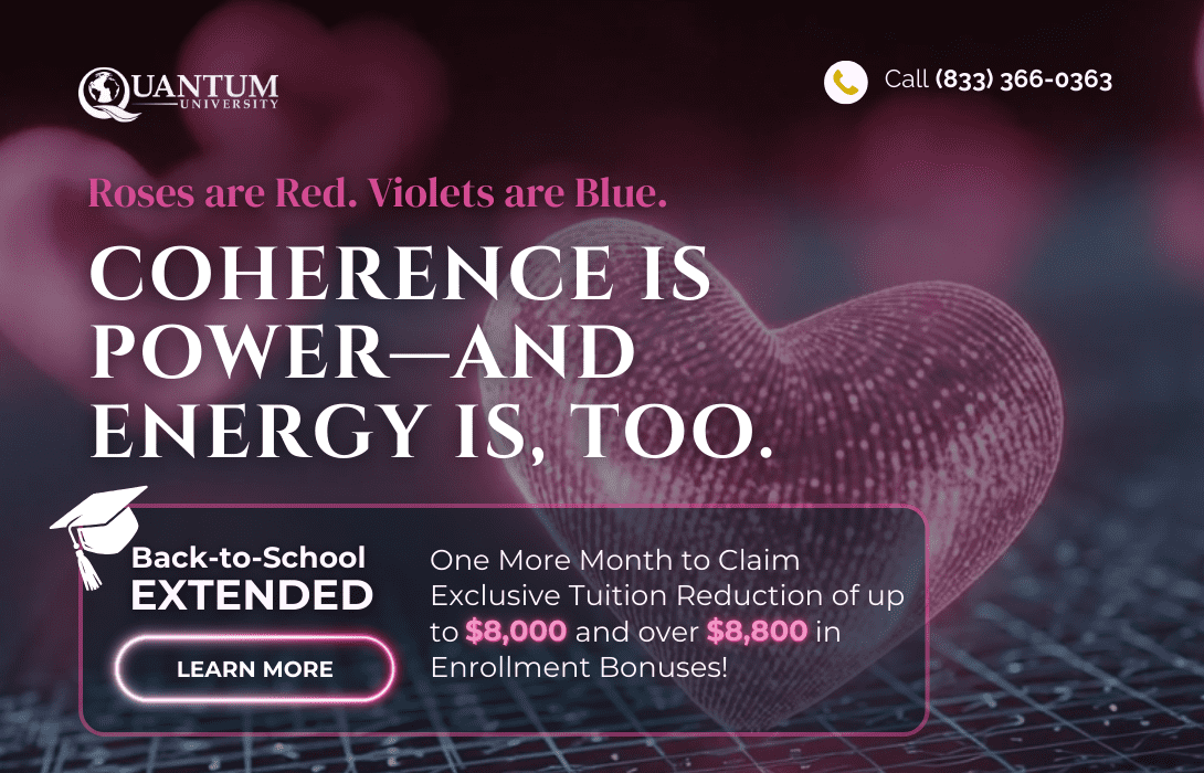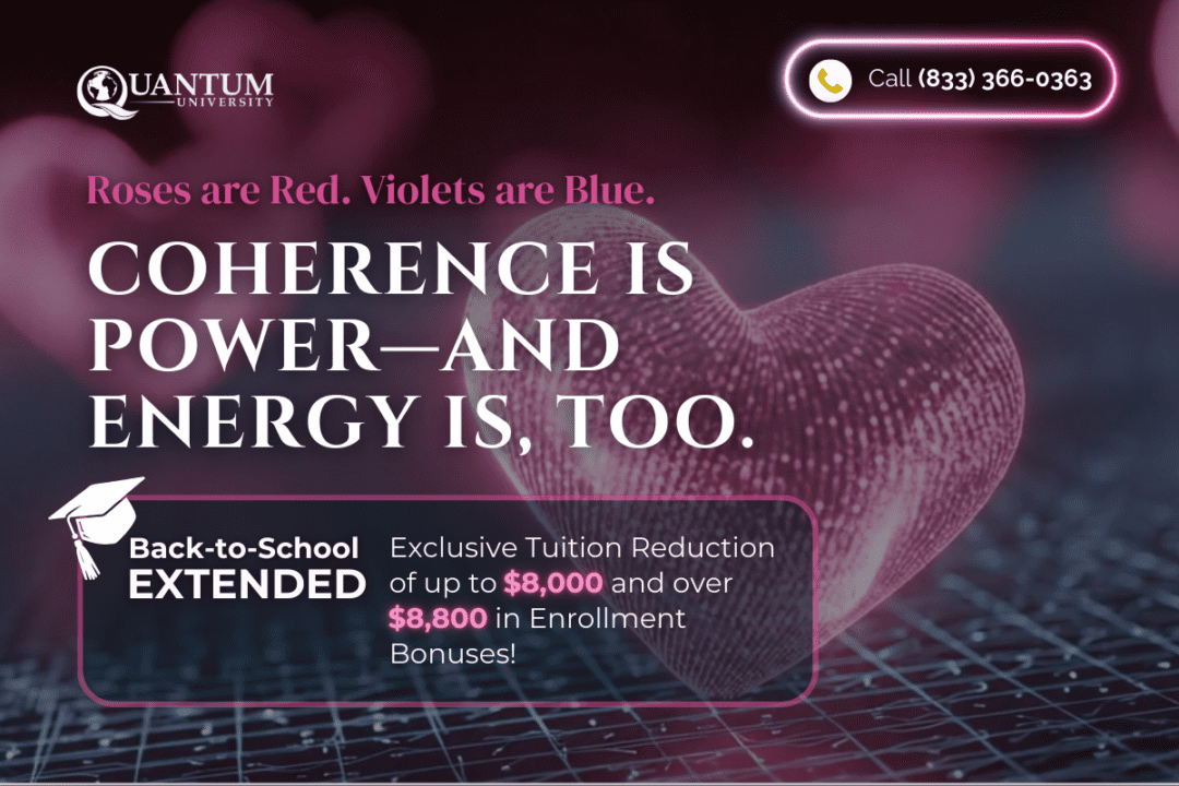 Consider this a Valentine’s love note to your future self: You don’t need a new version of you—you need a new way of operating. At Quantum University, you train coherence, aligning your mind, emotions, and actions, so learning becomes usable, energy becomes steady, and your goals become reachable.